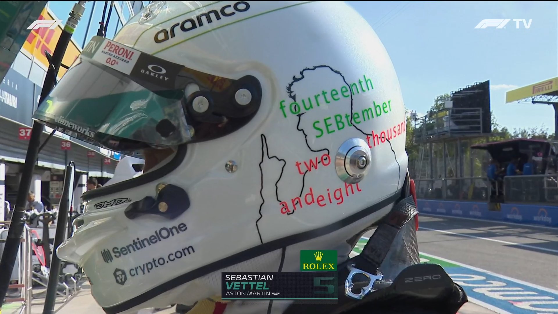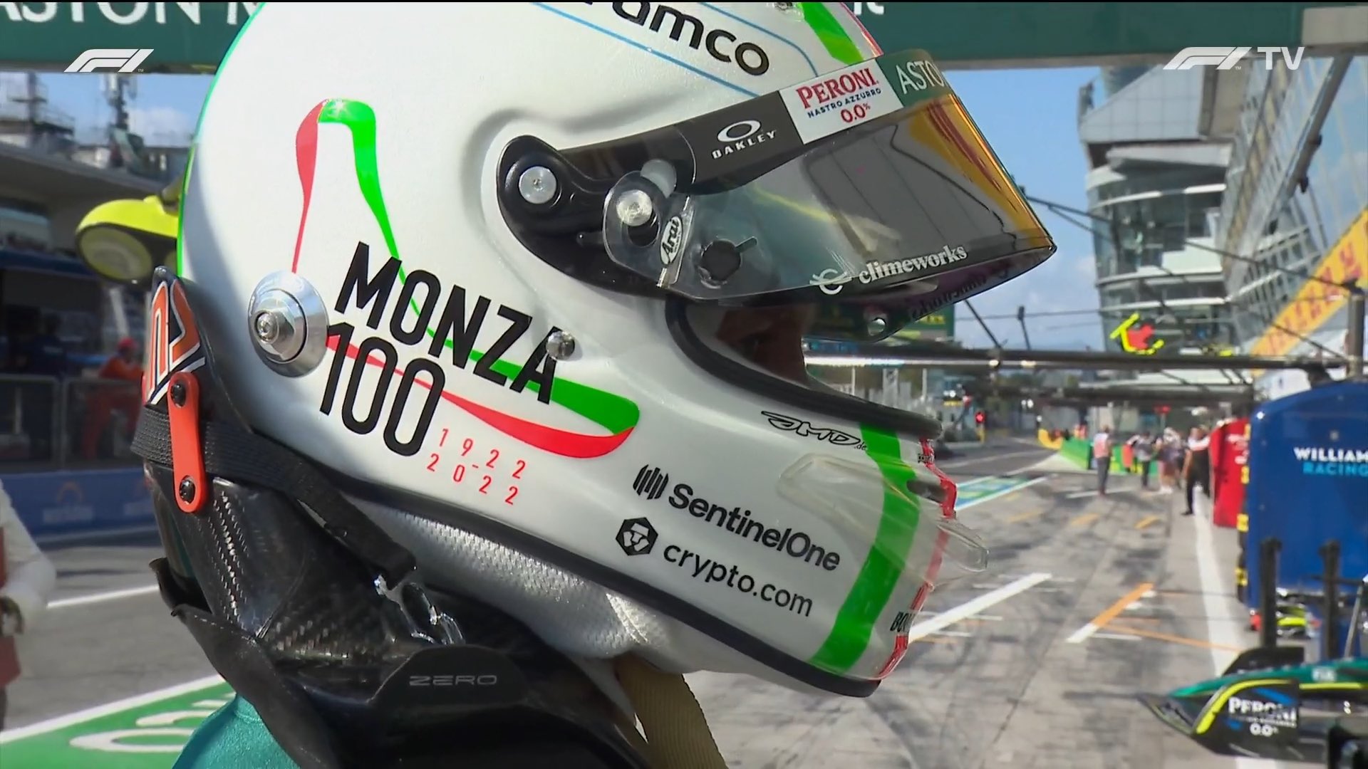 Vettel volverá a subirse a su coche en esta segunda sesión. Lleva un casco especial conmemorando su primera victoria en la F1 y los 100 años de carreras en Monza.