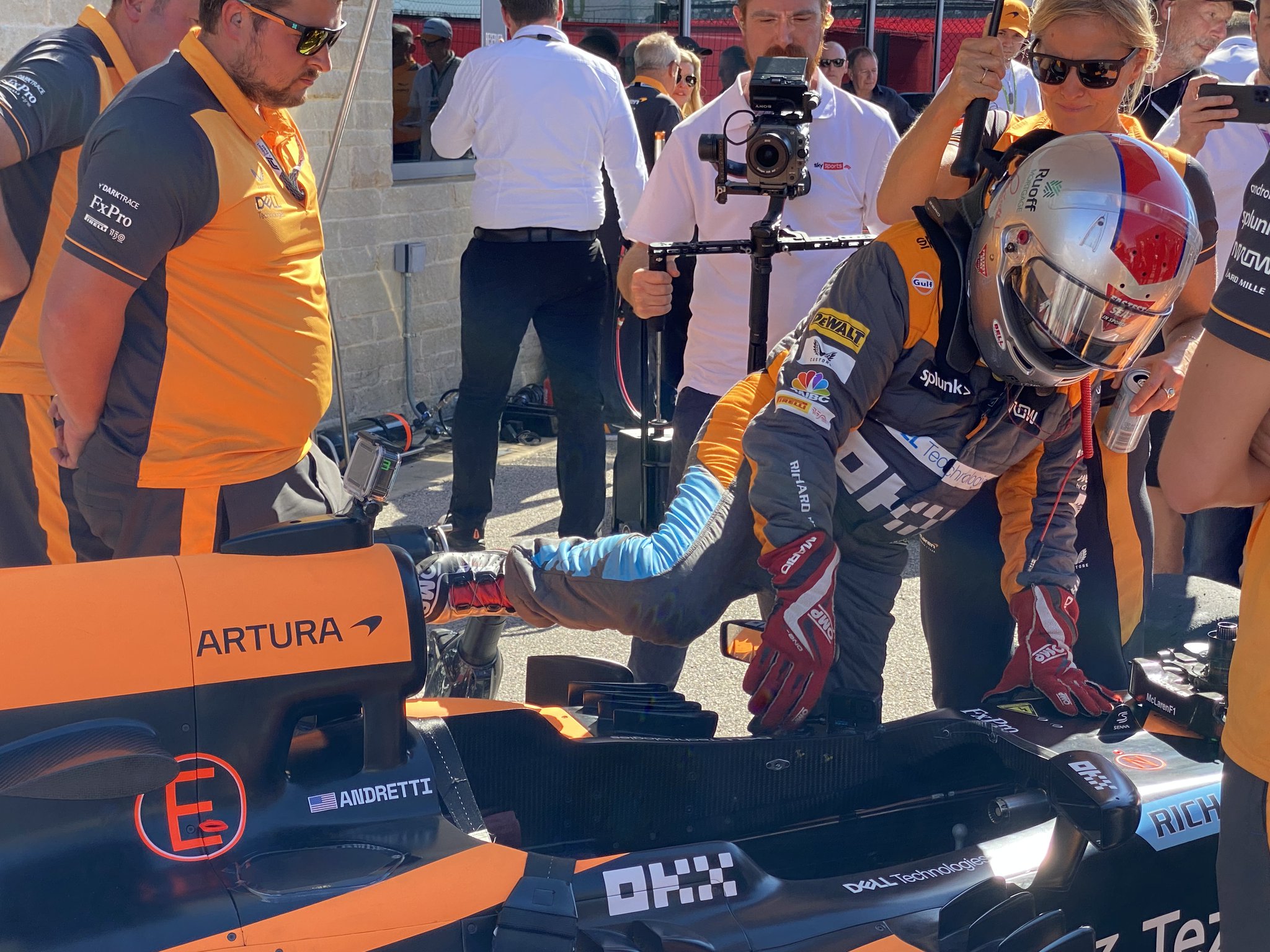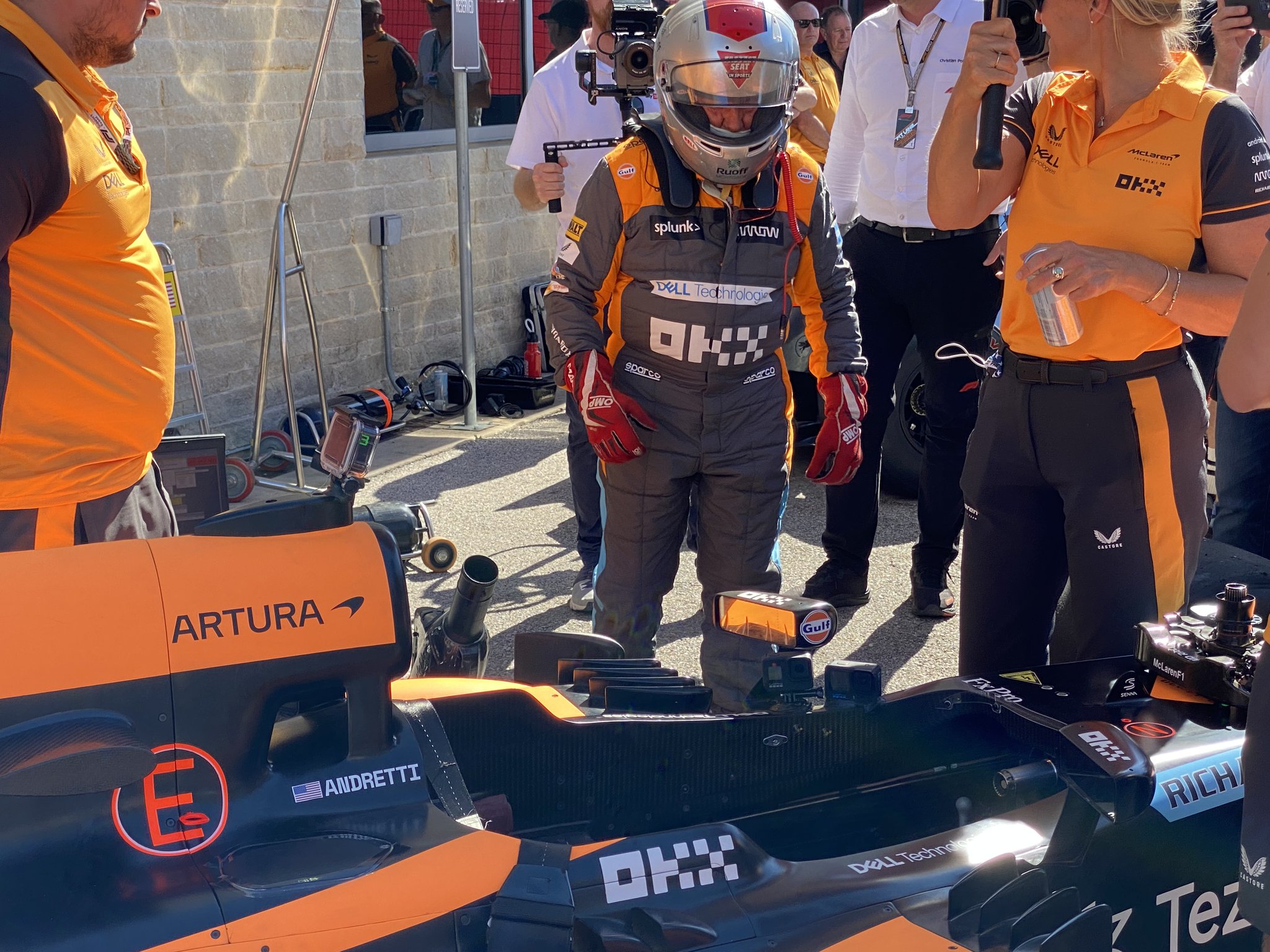 Some serious @McLarenF1 fever in Austin: @MarioAndretti in the 2013 car (now in new livery) and @ZBrownCEO in the car that Hamilton won with here in 2012. So cool! 😍 #F1 #USGP
