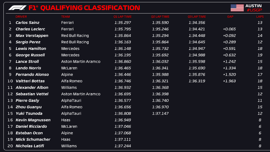 Gran última vuelta de Carlos, especialmente en el tercer sector, que le permite ganar la primera pole para Ferrari en el COTA.