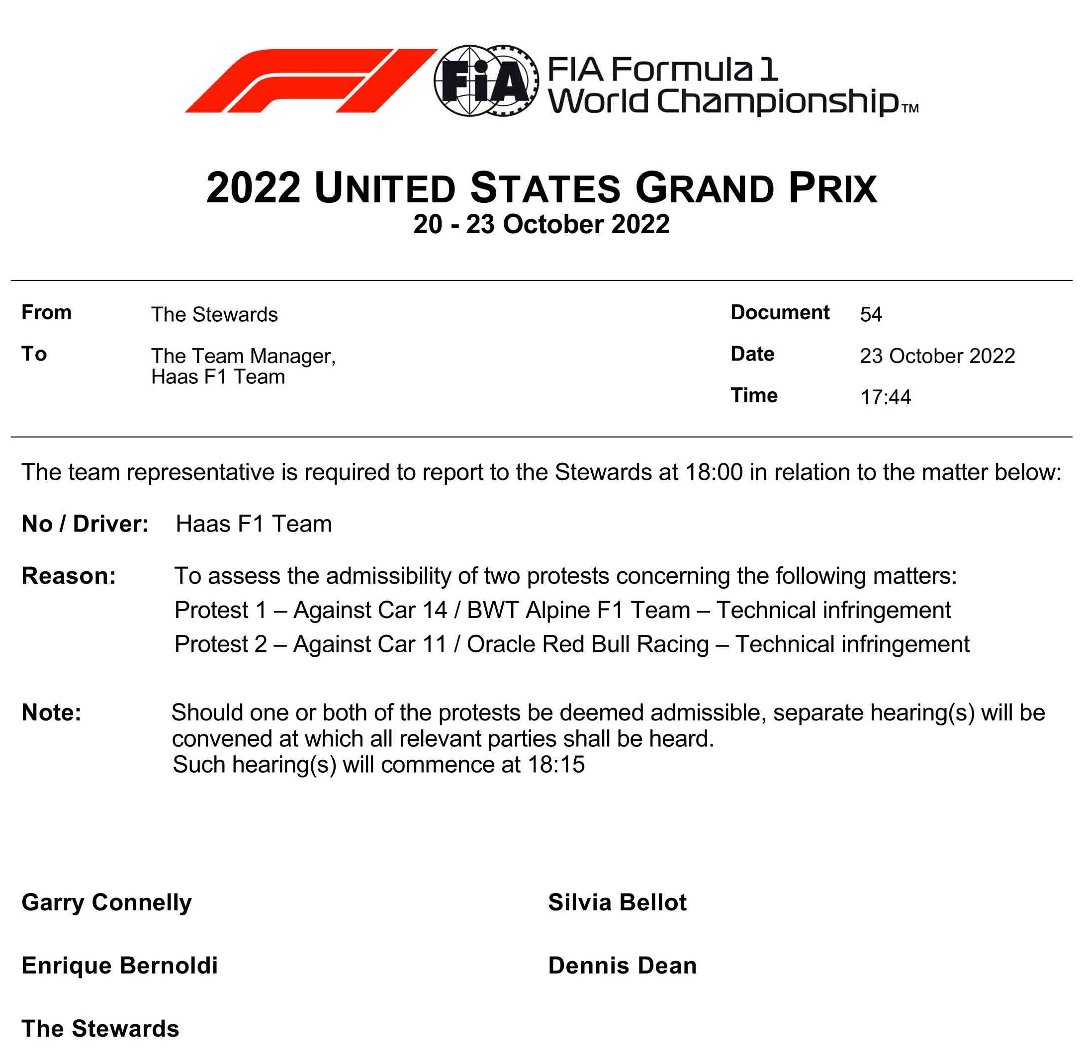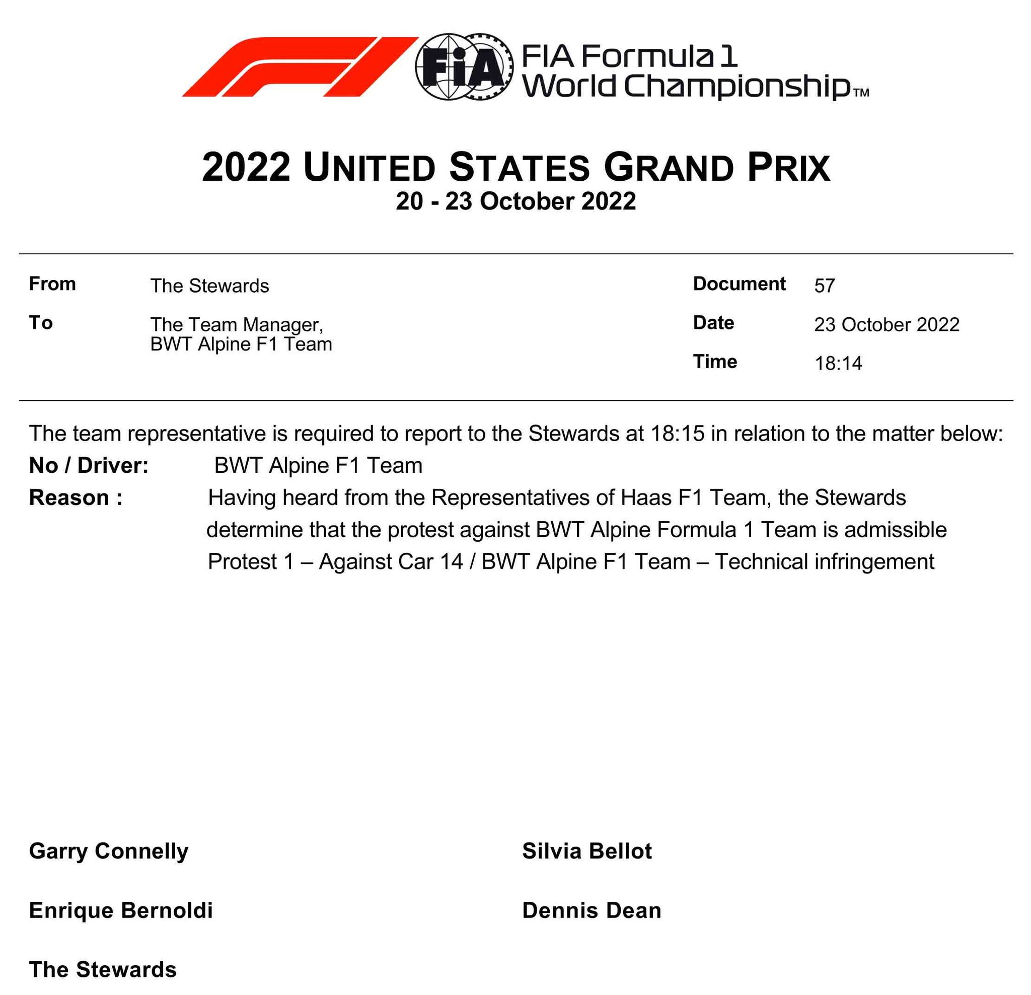 La FIA admite las protestas de Haas y llaman a declarar a un representante de Alpine y de Red Bull. Veremos si al final no le dan un disgusto a Fernando.
