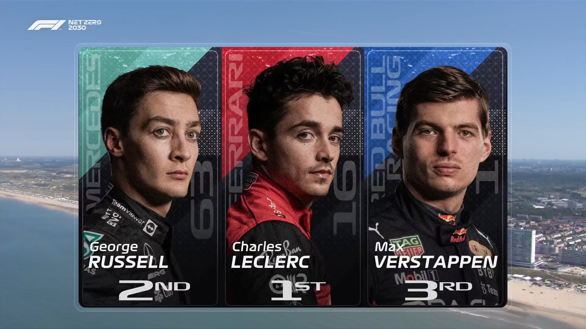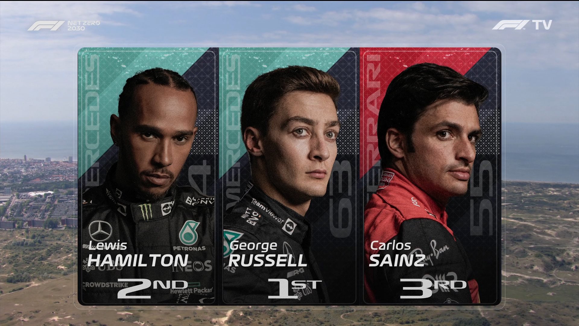 Las siguientes tres posiciones han sido ocupadas por sus compañeros de equipo con SAINZ acabando a 3 décimas y HAMILTON y Checo PÉREZ a medio se segundo de Leclerc.