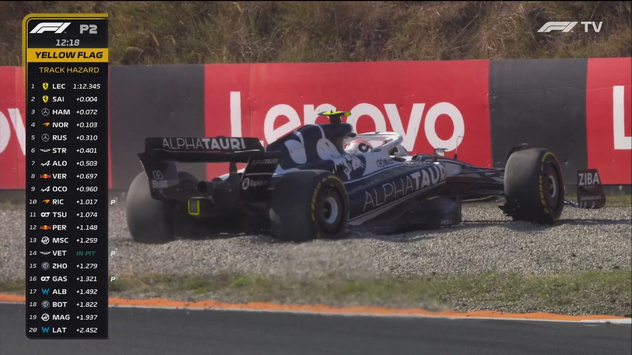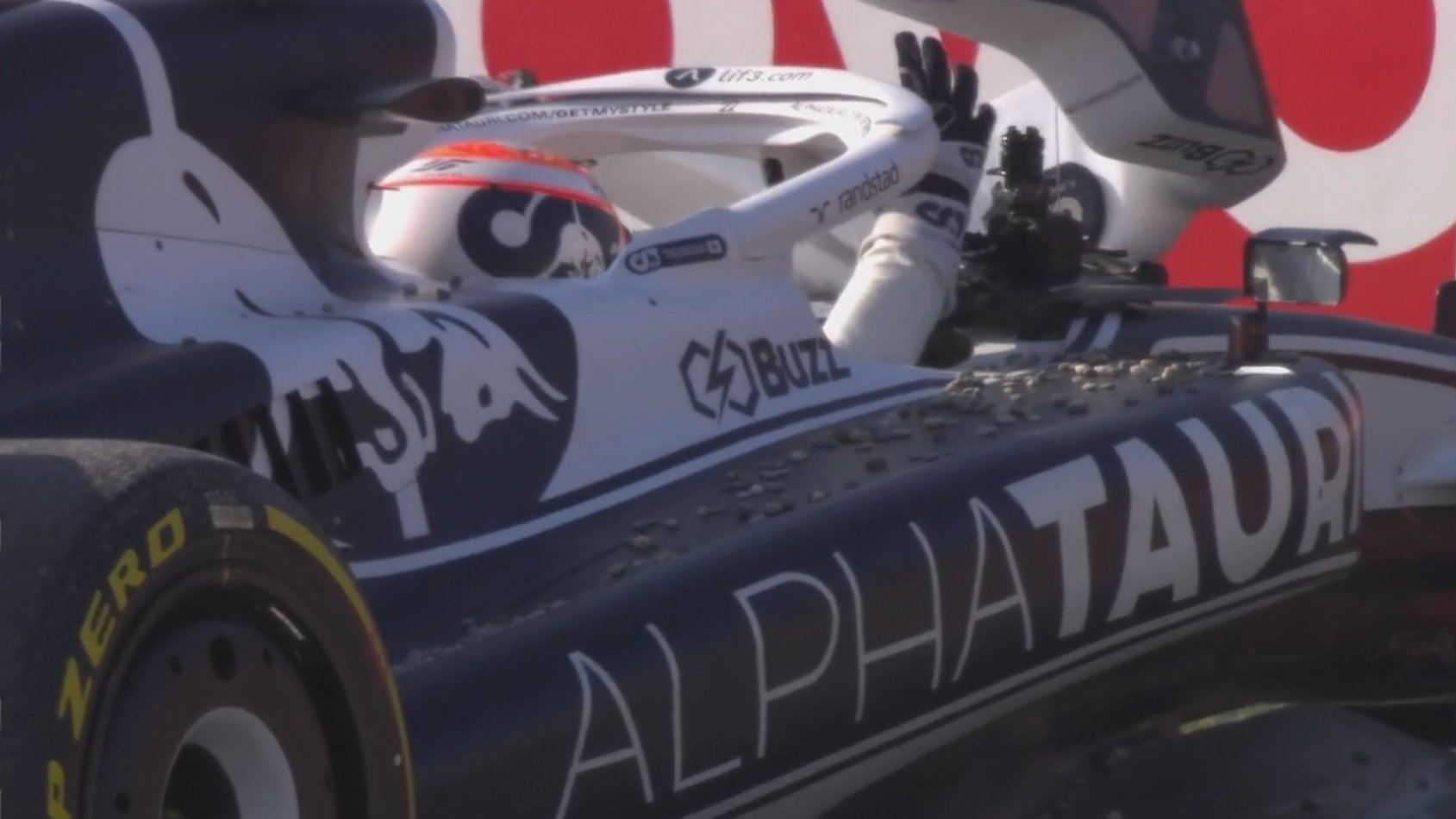 Bandera roja por una salida de pista de Tsunoda, que se queda atrapado en la grava y no puede volver a la pista.