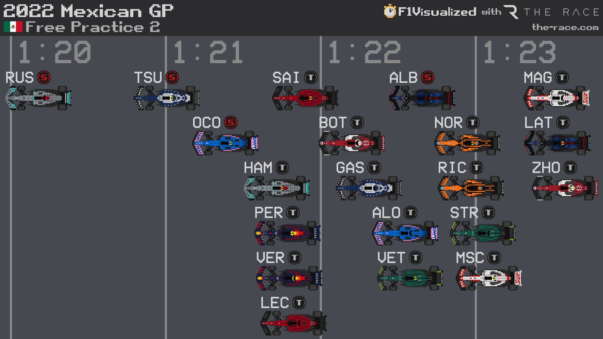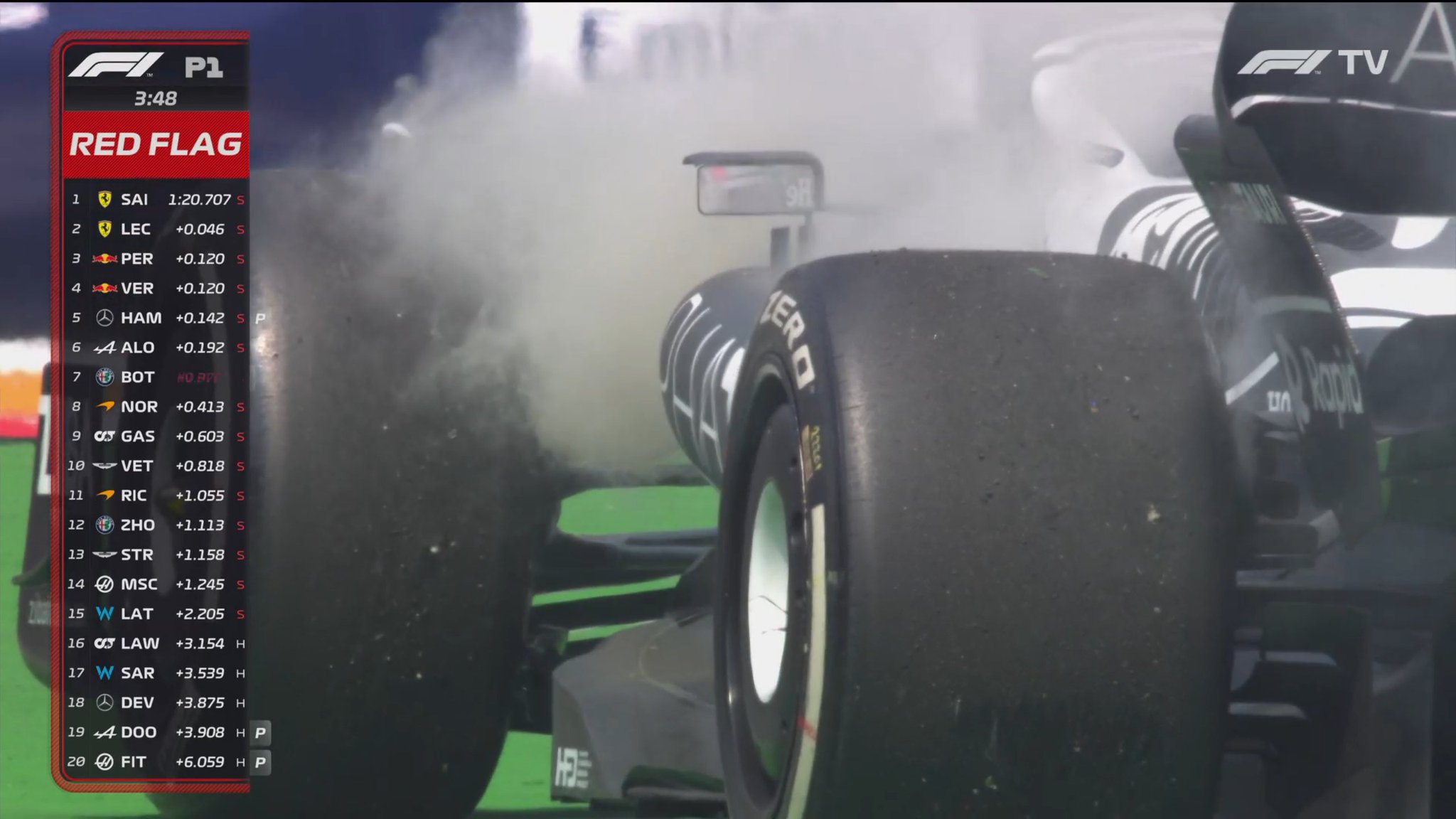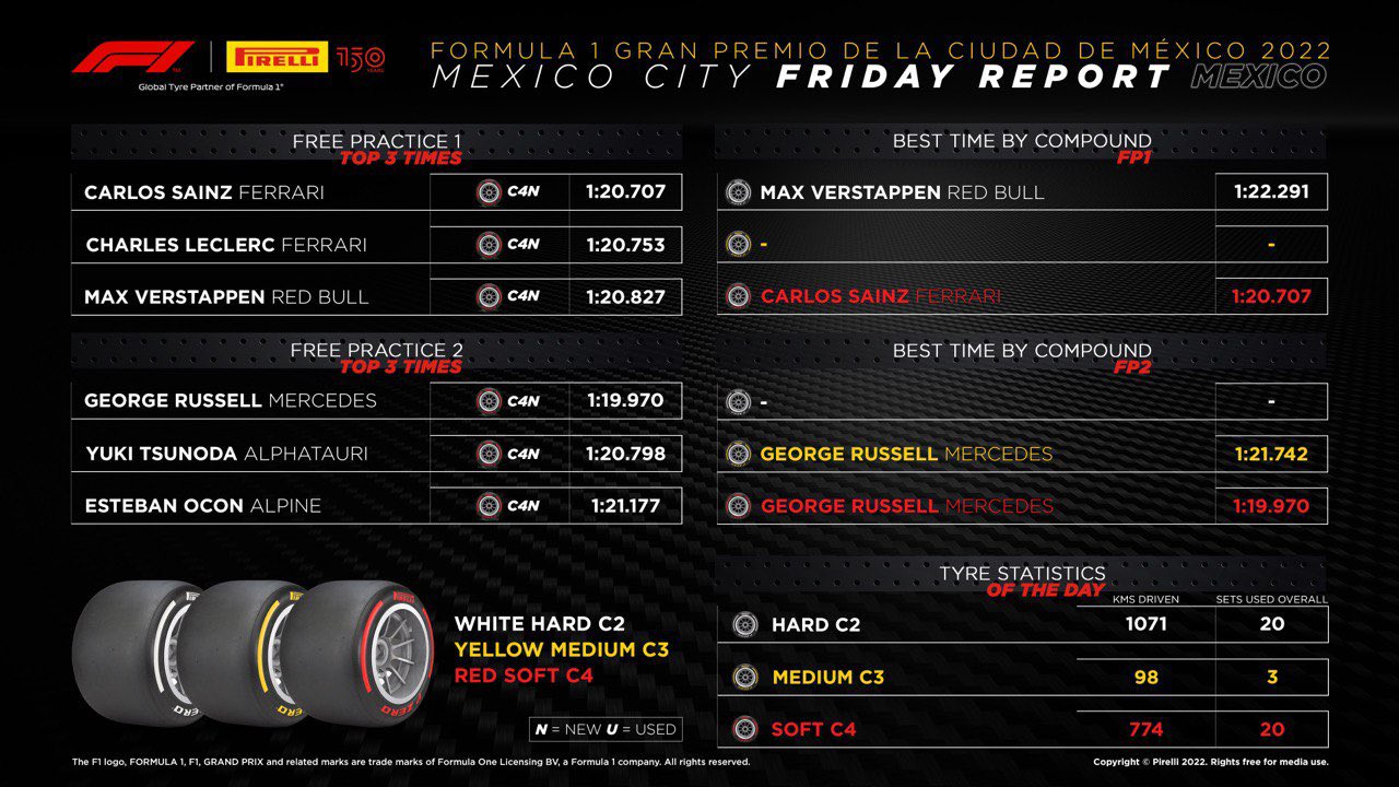 Para desgracia de Pirelli, debido al accidente de LECLERC, la sesión se ha visto recortada. Como ocurrió en Austin, dado a que nadie sabe qué tipo de compuesto han montado y además han tenido que seguir las órdenes de Pirelli, poco se puede concluir de esta sesión.