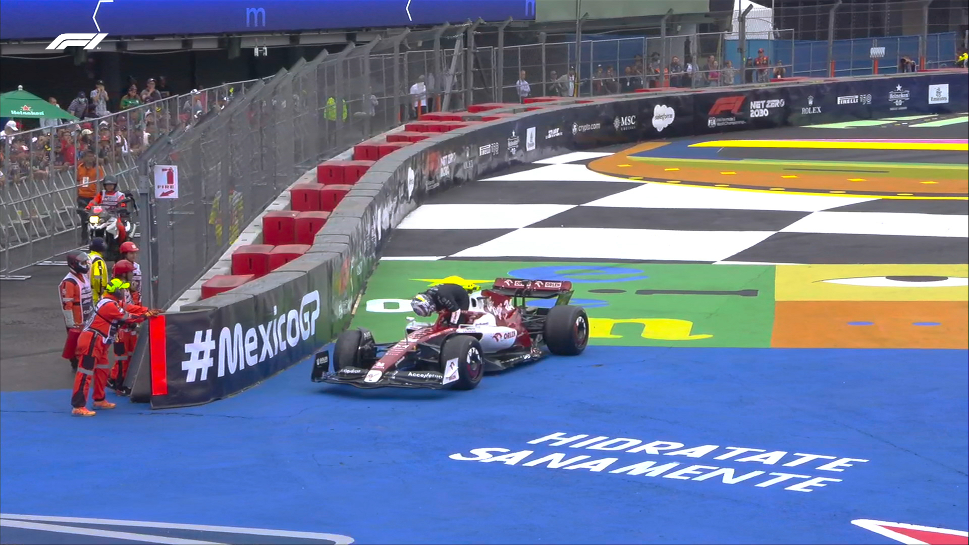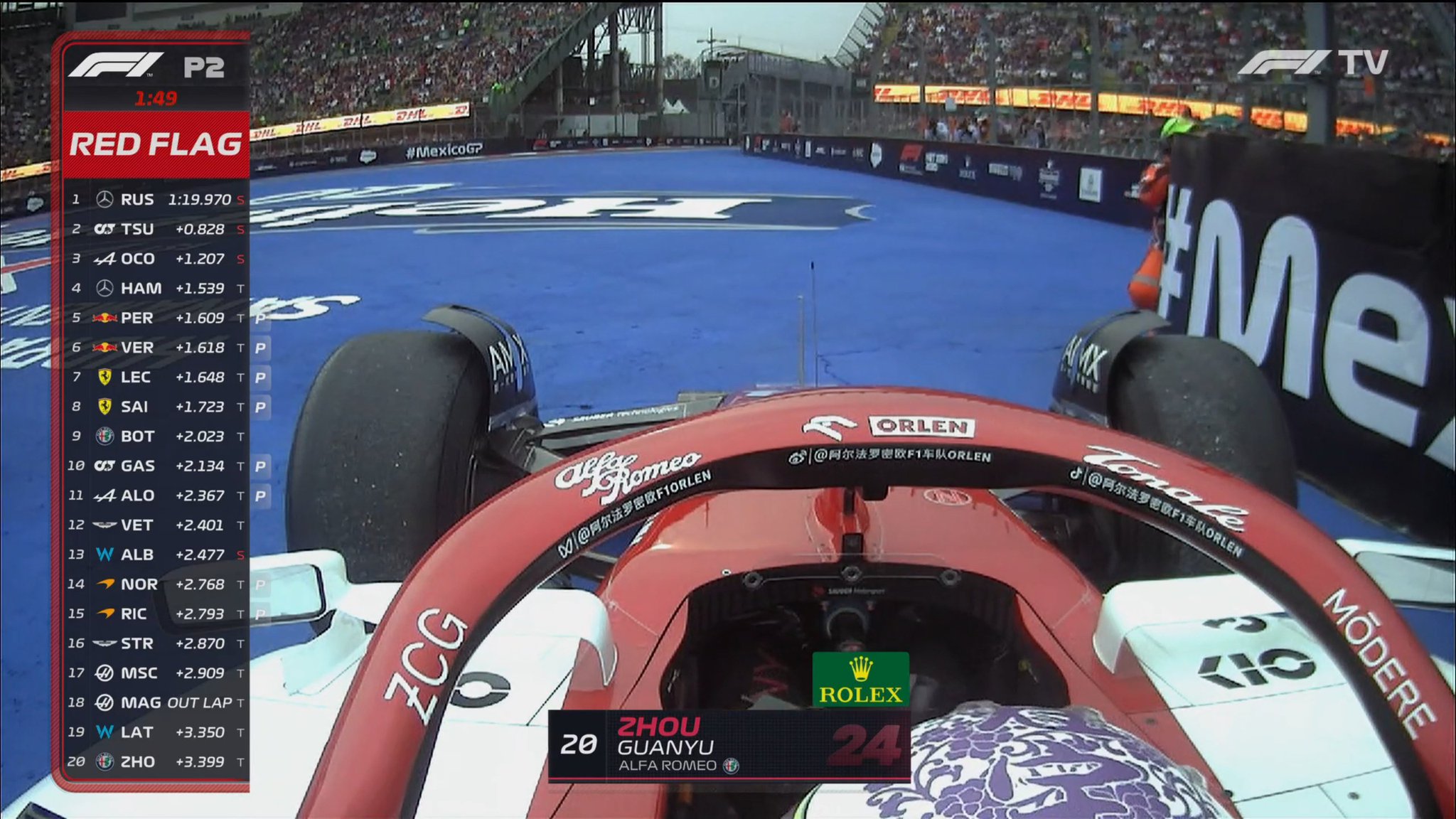 Nueva bandera roja a falta de casi dos minutos cuando Zhou tiene que parar el coche por un fallo hidráulico en la zona del estadio.
