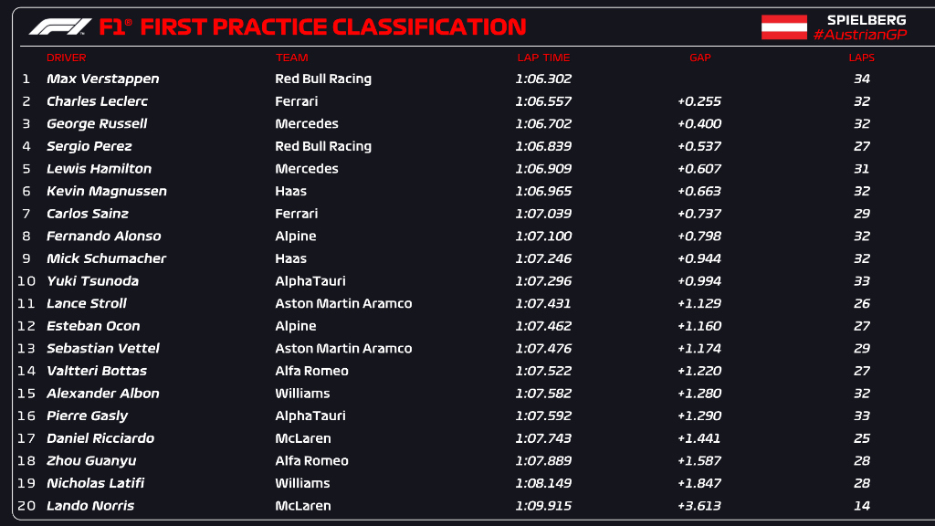The first eight finishers get points, the winner taking 8, then all the way down to a single point for eighth place. Prior to that, there's a final hour of free practice at 12.30. The Austrian Grand Prix gets underway on Sunday at 15.00, with the grid order taken from the result of the Sprint.