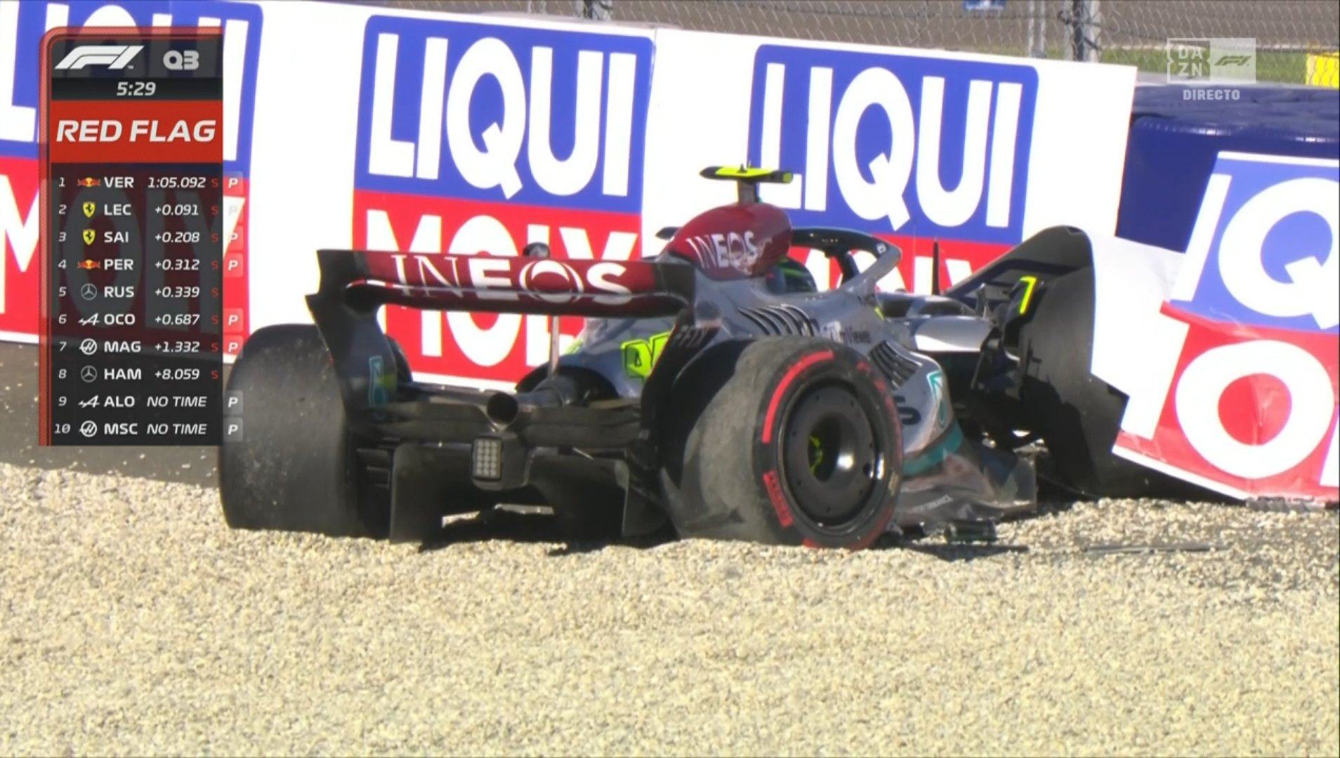 ¡Nueva bandera roja a falta de 2:31! Esta vez ha sido por accidente de Russell, por lo que los mecánicos de Mercedes van a tener mucho trabajo esta noche.