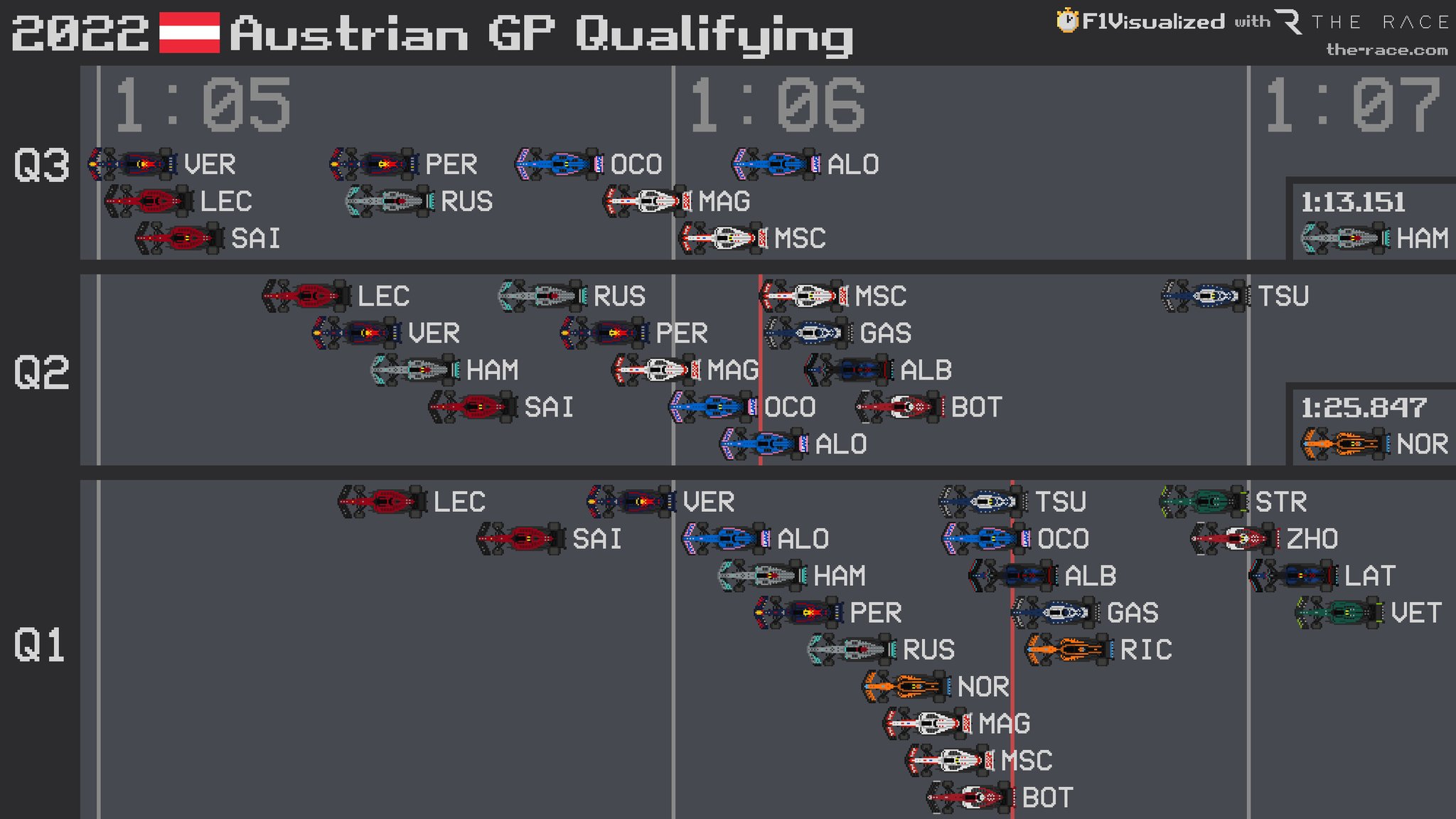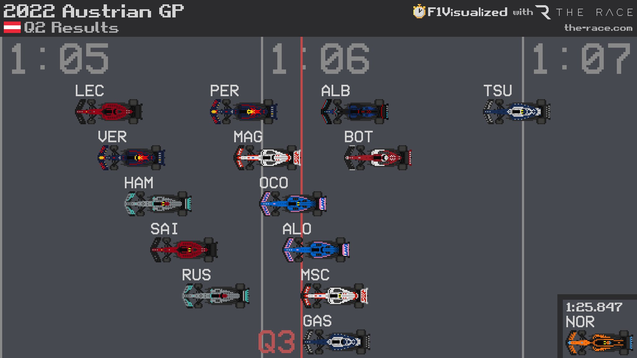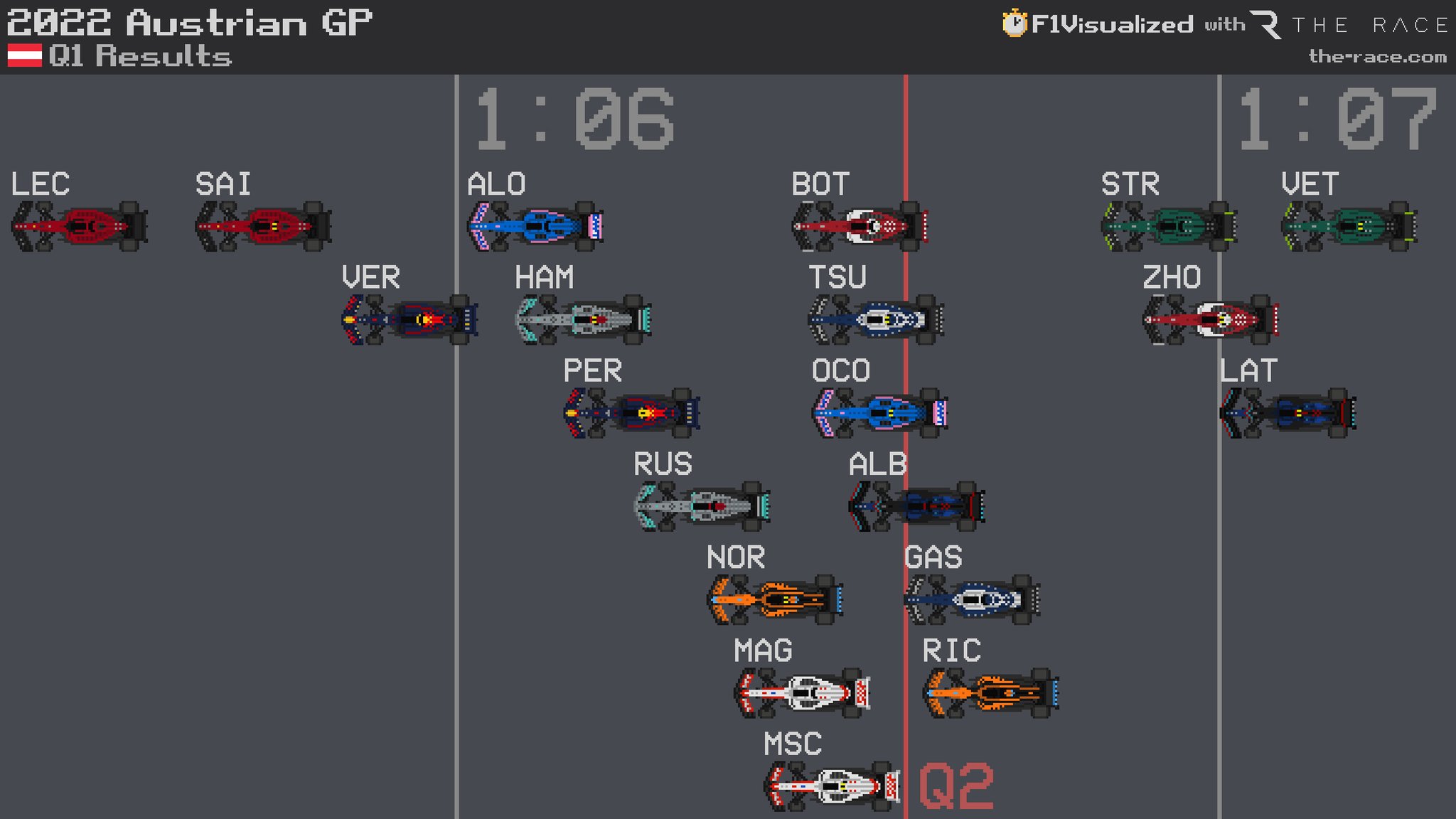 Sorpresa al ver a Vettel en última posición. Le eliminaron una vuelta pero aún así, no habría pasado el corte.