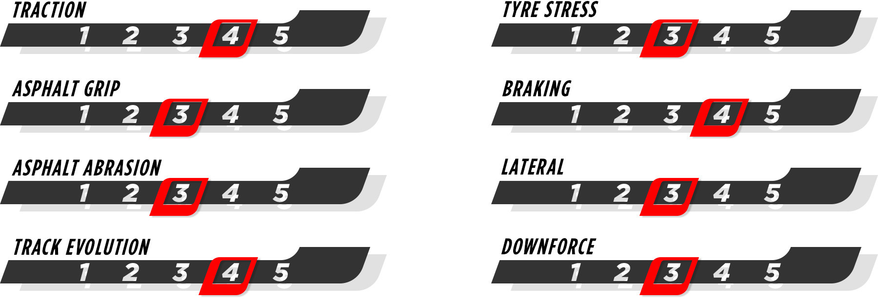 Es una pista sencilla, en la que su segundo sector, con sus curvas de 90º al estilo urbano, es lo único que requiere de la habilidad del piloto.